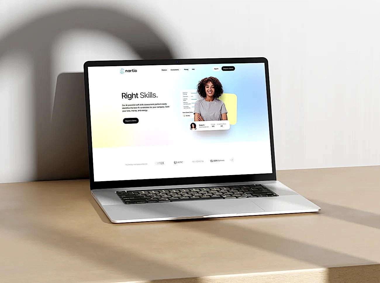 Nartio, adayların soft-skill değerlendirmelerini doğru ve tarafsız bir biçimde markalara sunmak için gelişmiş yapay zeka ve makine öğreniminden yararlanan bir platform. Bu projede ana hedef, Nartio'nun yeteneklerini ve kullanıcı dostu arayüzünü etkili bir şekilde sergileyen modern, sezgisel ve kullanışlı bir web sitesi tasarlamaktı. Yeni web sitesinde Nartio'nun işverenlere daha etkin bir şekilde pazarlama mesajlarını sunmalarını sağladık. Diğer yandan Nartio’ya müşterilerinin işe alım süreçlerini ve verimliliklerini nasıl iyileştirebildiğini anlatma fırsatı yarattık.